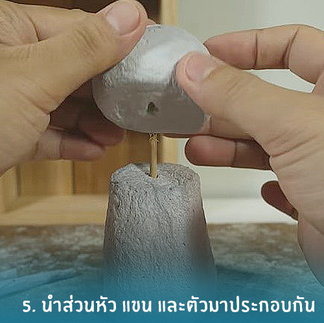 5. นำส่วนหัว แขน และ ตัวมาประกอบกัน โดยให้ไม้ยึดสิ้นส่วนต่างๆไว้